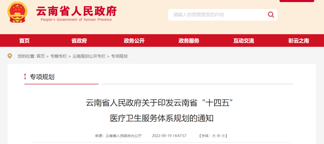 近日,云南省人民政府印發了《云南省“十四五”醫療衛生服務體系規劃》(以下簡稱《規劃》)。