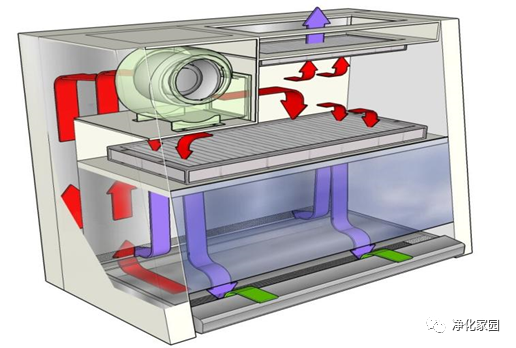 圖2二級B2型生物安全柜結構及氣流模型示意圖