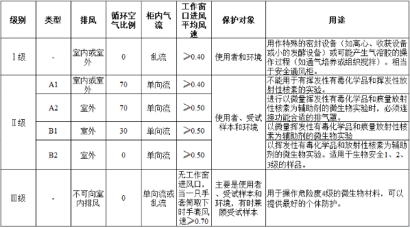 就防止微生物氣溶膠污染的保護能力而言,A1、A2、B1和B2的4種型號生物安全柜相同。