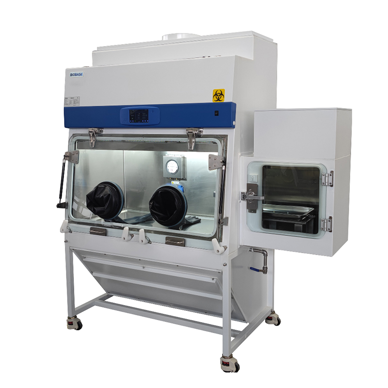 安全柜正面下部為手套箱式操作口,柜內(nèi)操作是通過與安全柜相連的橡膠手套進(jìn)行,安全柜應(yīng)維持至少120Pa的負(fù)壓,方可確保人體與柜內(nèi)物品完全隔絕,下降氣流經(jīng)高效過濾器過濾后進(jìn)入安全柜;排出氣流經(jīng)二道高效過濾器過濾后排出。