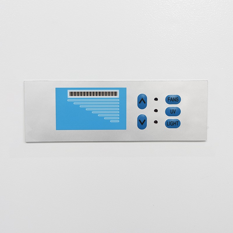 1.8控制面板采用輕觸式開關,按鍵由風機鍵、照明鍵、紫外鍵、電源鍵、風量減小鍵、風量增大鍵組成,易于操作;顯示屏顯示內容有:通過光柱多少顯示風機的風速;