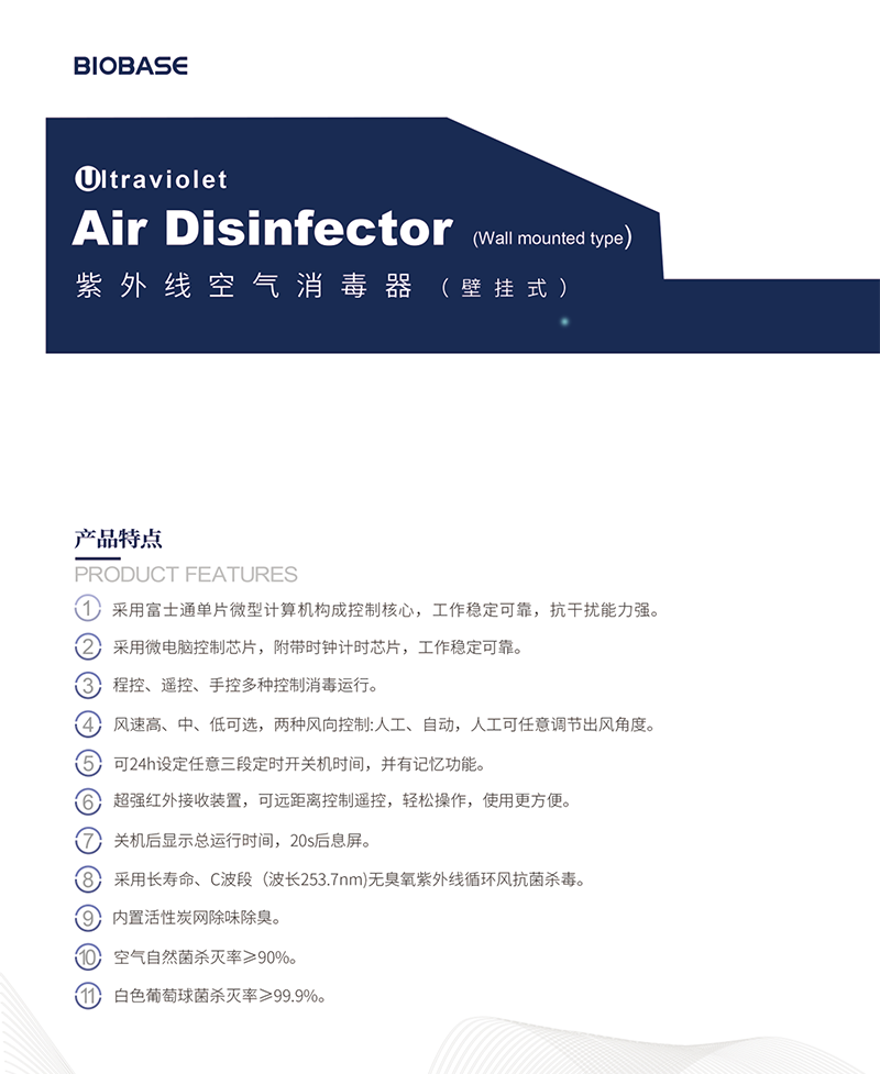 采用長壽命、C 波段(波長 253.7nm)無臭氧紫外線循環風抗菌殺毒; |