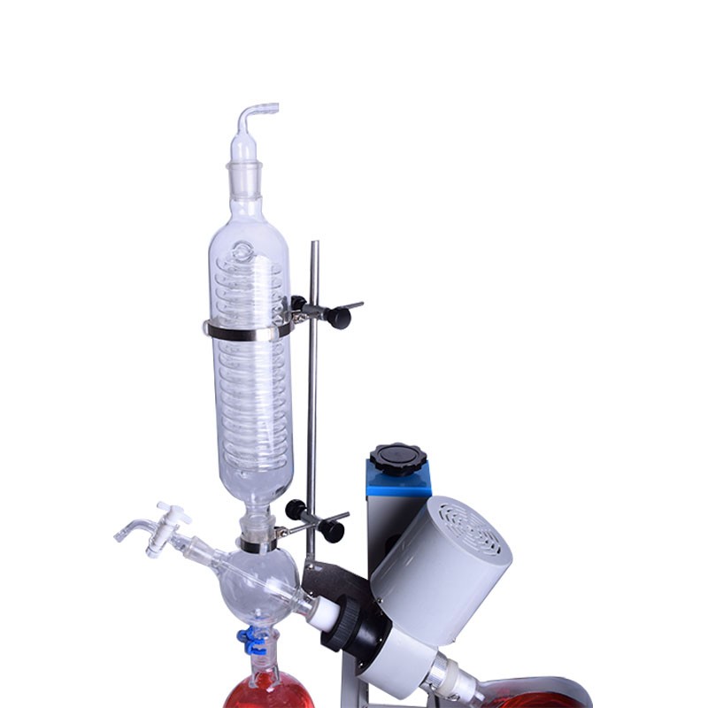 旋轉蒸發器與物料接觸部分全部采用高硼硅玻璃(膨脹系數3.3)和聚四氟乙烯材料,性能穩定不易與物料起化學反應。